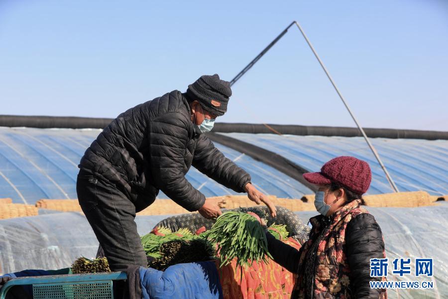 2月7日,滦南县宋道口镇断火庄村农民将收获的韭菜装车。
