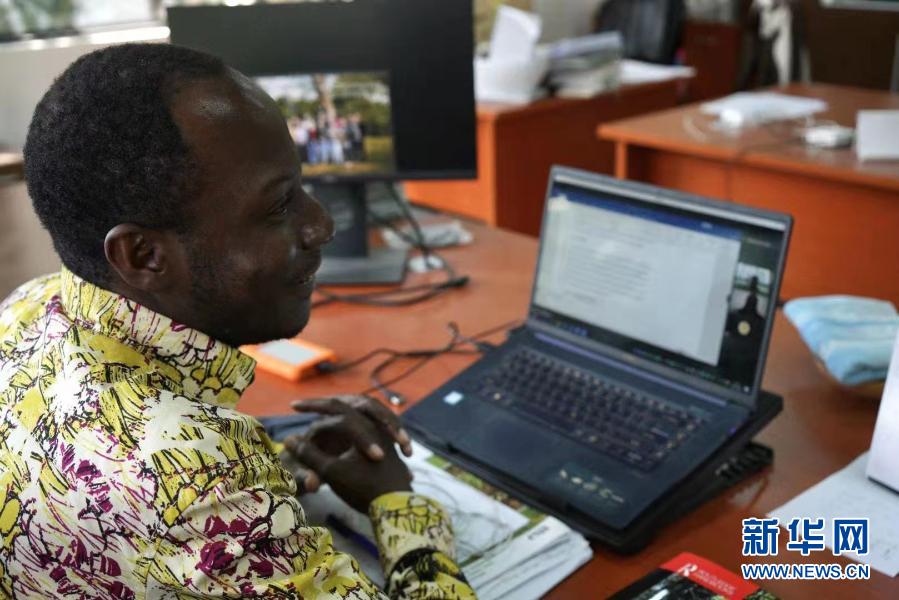 2月5日,中科院西双版纳热带植物园贝宁籍专家高大山在对学生进行线上指导。新华社记者 孟佳 摄