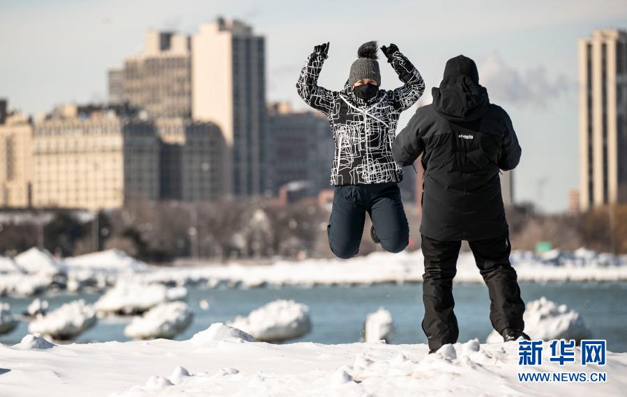 当日,寒潮侵袭芝加哥地区,风寒指数达零下20摄氏度至零下25摄氏度。新华社发(乔尔·莱纳摄)