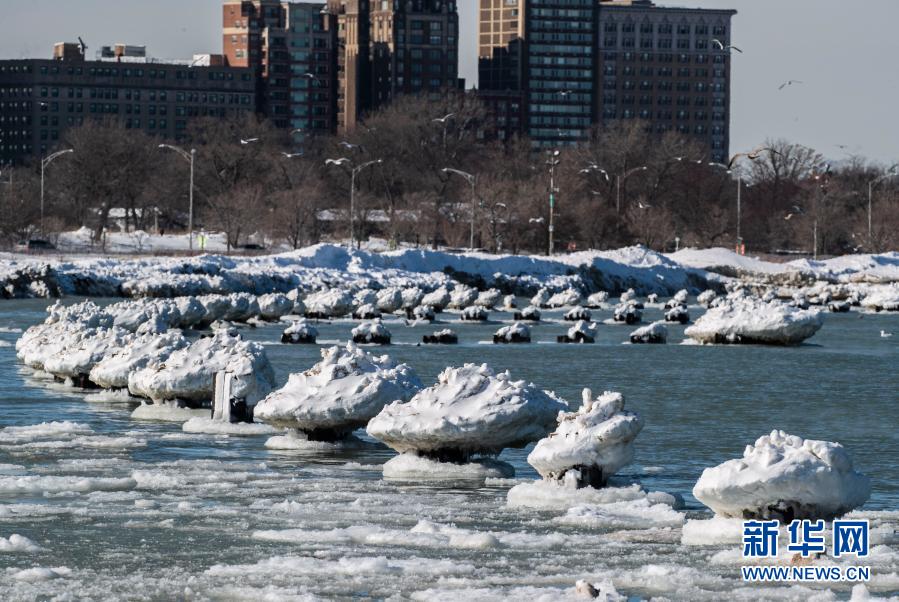 这是在美国芝加哥拍摄的严寒中的密歇根湖(2月7日摄)。