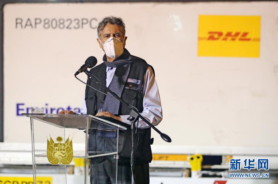 首批由中国国药集团生产的新冠疫苗当地时间7日晚运抵秘鲁首都利马。秘鲁总统萨加斯蒂前往机场迎接并向全国发表电视讲话,感谢中国对秘鲁抗疫的支持。