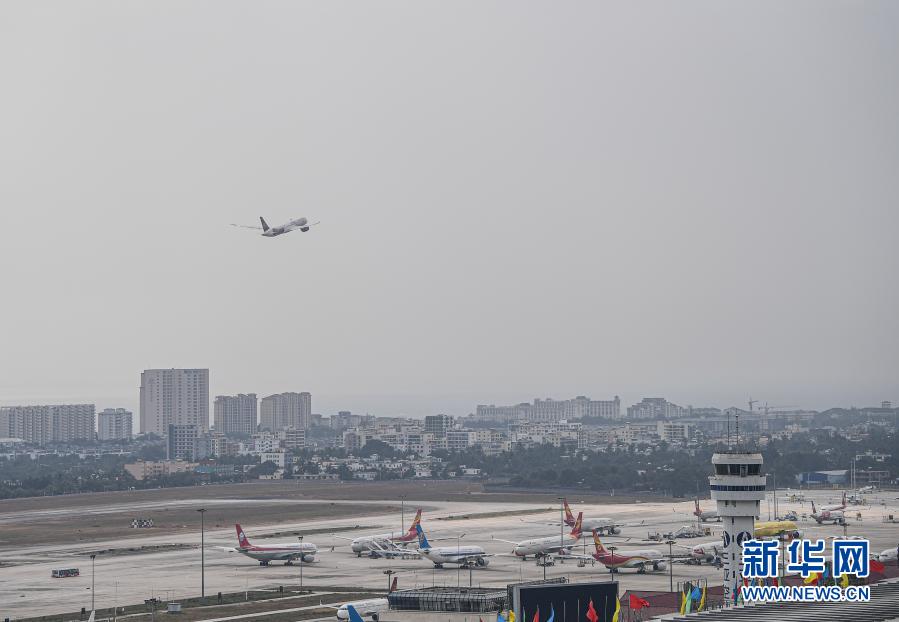 1月28日,一架民航客机从三亚凤凰国际机场起飞。新华社记者 蒲晓旭 摄