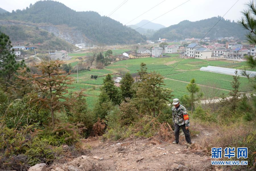 2月4日,罗霄山护林员廖苟林在山上徒步巡查。新华社记者 陈振海 摄