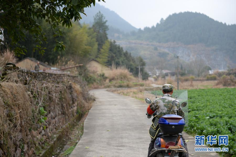 2月4日,罗霄山护林员廖苟林行驶在大源村中。新华社记者 陈振海 摄
