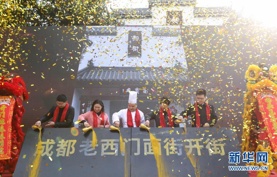 2月8日,在成都市老西门面街,5名代表启动开街仪式。