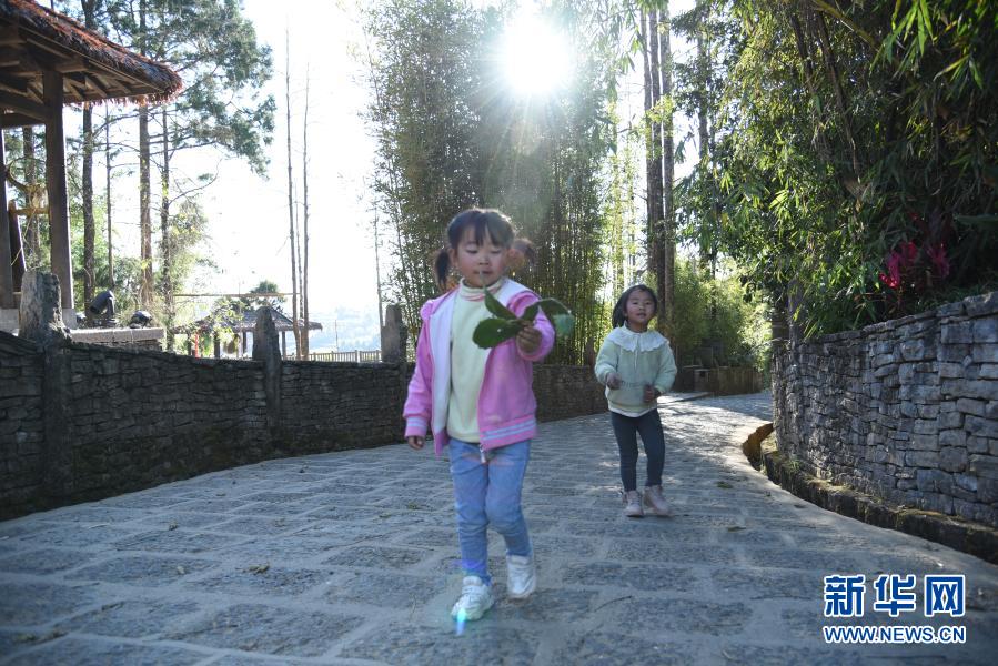小朋友在中寨司莫拉佤族村游玩(2020年12月30日摄)。新华社记者 林碧锋 摄