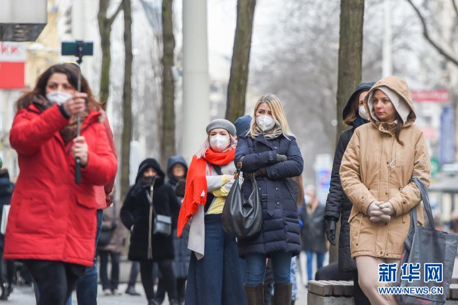 2月8日,奥地利维也纳的玛利亚希尔夫大街上,因为需要控制店内人数和保持社交距离,市民正在排队等待进入商场购物。