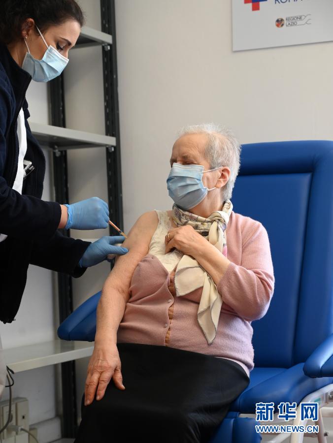 当日,意大利部分大区开始为80岁及以上老人接种新冠疫苗。