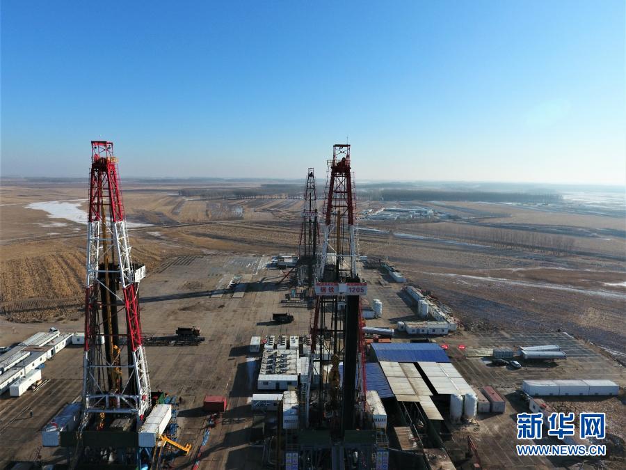 1月23日拍摄的大庆油田1205钻井队井架(无人机照片)。新华社发(顾景坤 摄)