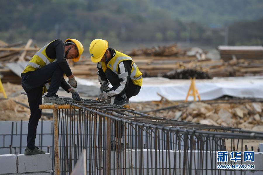 2月8日,施工人员在汕尾理工学院一期项目工地施工。