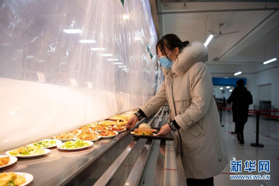 王舒婷在哈尔滨工业大学食堂里挑选餐品(2月1日摄)。新华社记者 谢剑飞 摄