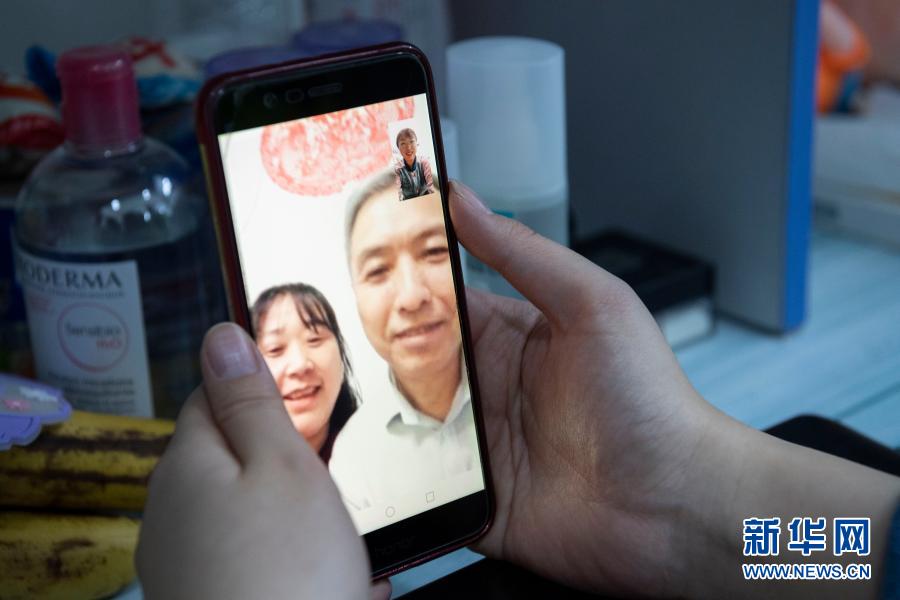 在哈尔滨工业大学的宿舍里,王舒婷和父母视频通话(2月1日摄)。新华社记者 谢剑飞 摄