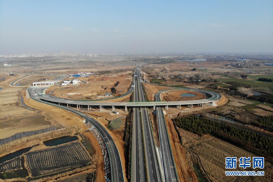 这是2月9日拍摄的滁马高速全椒段互通立交工程(无人机照片)。