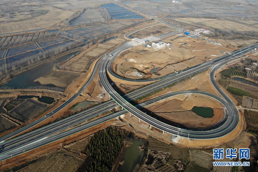 这是2月9日拍摄的滁马高速全椒段互通立交工程(无人机照片)。