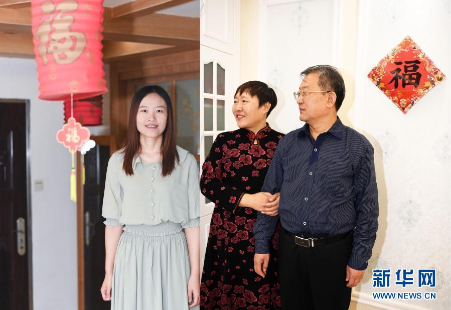 这是一张拼版的“全家福”照片。左图为“90后”助产士陈志昊在广州的家中(2月6日,新华社记者邓华摄);右图为陈志昊的父亲陈国谦(右)、母亲庞丽在山东泰安的家中(2月8日,新华社记者王凯摄)。