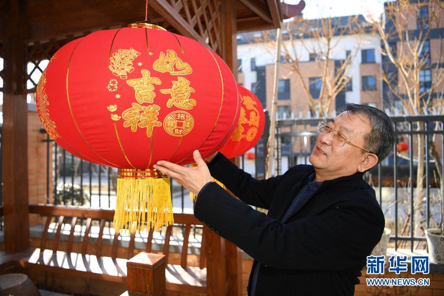 陈志昊的父亲陈国谦在山东泰安的老家中挂红灯笼(2月8日摄)。