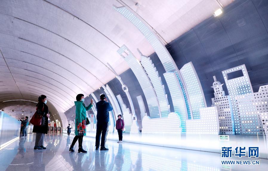 2月9日,市民游客在上海地铁15号线吴中路站站厅内拍照。新华社记者 方喆 摄