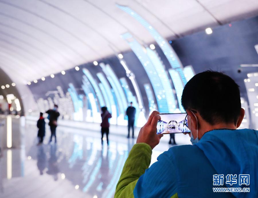 2月9日,乘客在上海地铁15号线吴中路站站厅内拍照。新华社记者 方喆 摄