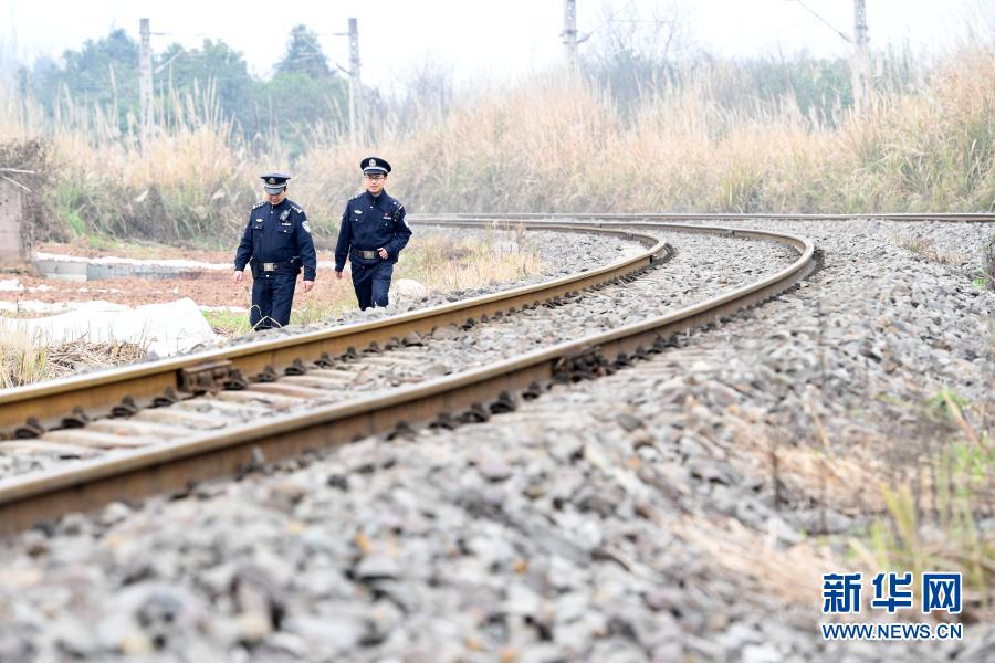 2月8日,雷激(左)和李斌在重庆团结村中心站巡逻。新华社记者 唐奕 摄