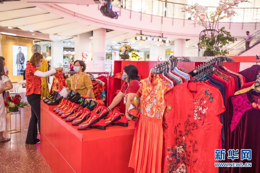 泰国将2021年中国春节列为泰国法定假日。随着节日临近,曼谷多家商场用中国元素装点一新,吸引顾客到来。