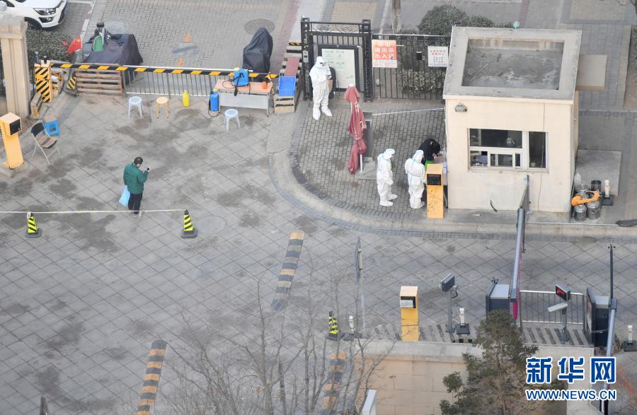 2月9日,工作人员离开大兴区融汇社区时登记。