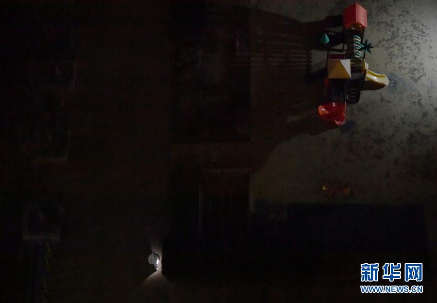 2月8日晚,一名防疫工作人员打着手电走在大兴区融汇社区内。