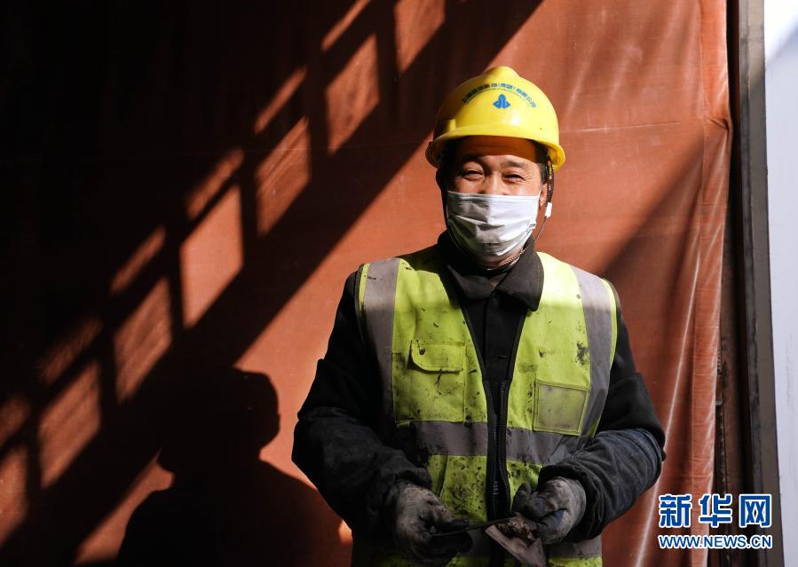 59岁的徐正堂(2月4日摄)。他来自江西上饶,参与中共一大会址纪念馆修缮改造已经两个月。今年春节,他自愿留在工地上过年。