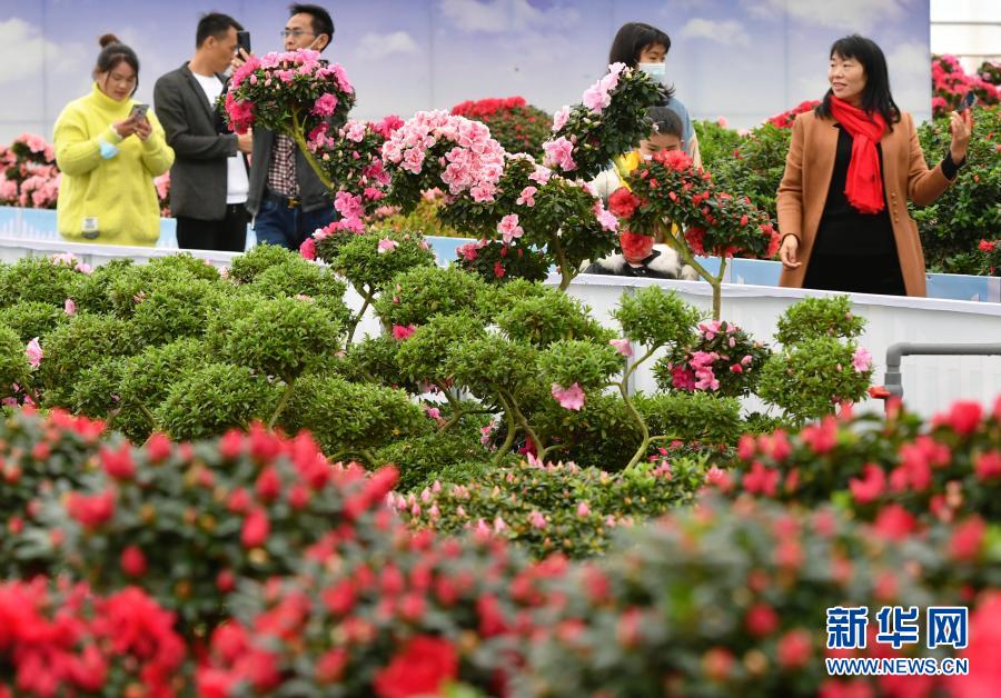 2月9日,游人在永福镇一处花展上参观。