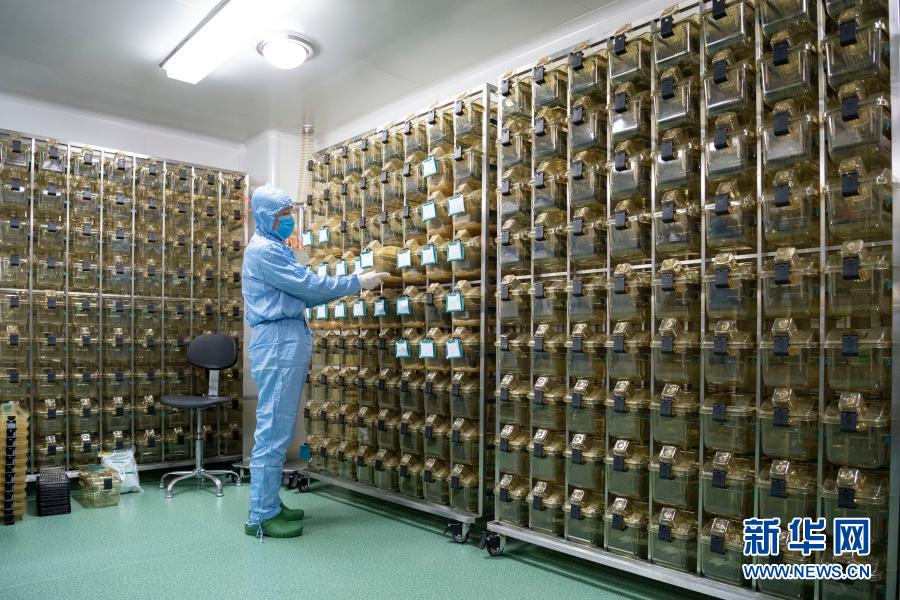 2月8日,在哈尔滨工业大学生命科学中心实验动物平台,工作人员观察小鼠。