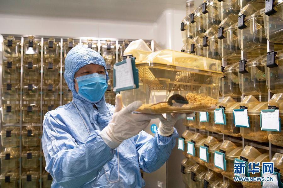 2月8日,在哈尔滨工业大学生命科学中心实验动物平台,工作人员观察小鼠。