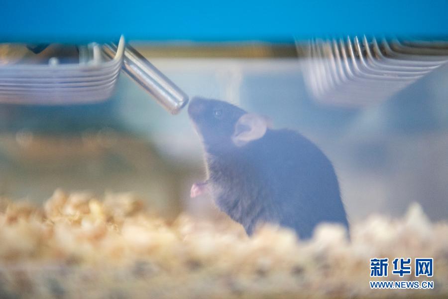 2月8日,在哈尔滨工业大学生命科学中心实验动物平台,小鼠在饮水。