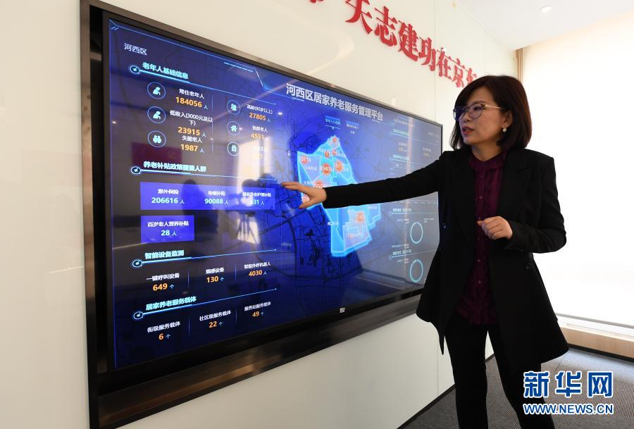 2月9日,京东工作人员介绍河西区居家养老服务管理平台。新华社记者 赵子硕 摄