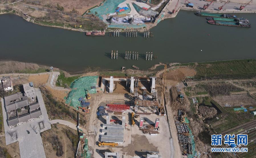 这是2月9日拍摄的建设中的合肥市广德路钢桥梁工程项目(无人机照片)。