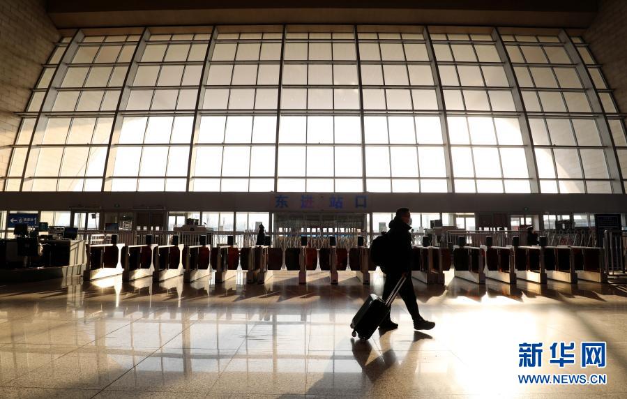 2月9日,在石家庄火车站,旅客正在进站准备乘车。