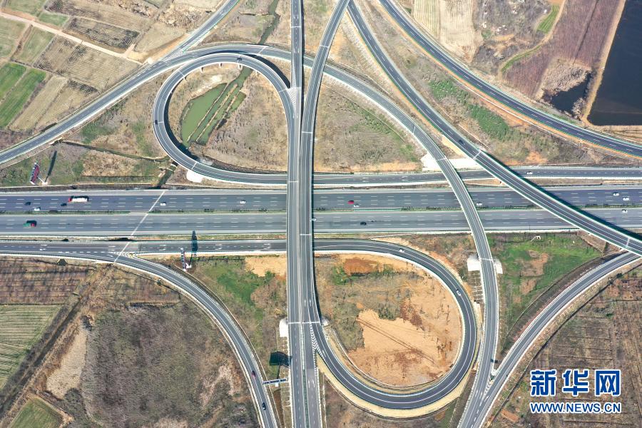 2月9日拍摄的沪陕高速安徽省全椒西枢纽(无人机照片)。
