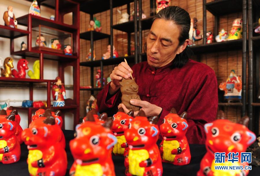 春节临近,河北省泊头市文庙镇军西村“三痴斋”泥塑大院的农家艺人忙着制作“萌牛”泥塑作品,迎接新春佳节。