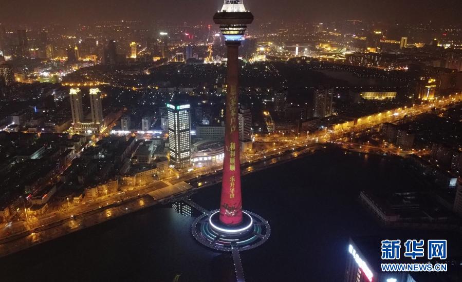 2月9日晚拍摄的天塔灯光秀现场。新华社记者 赵子硕 摄