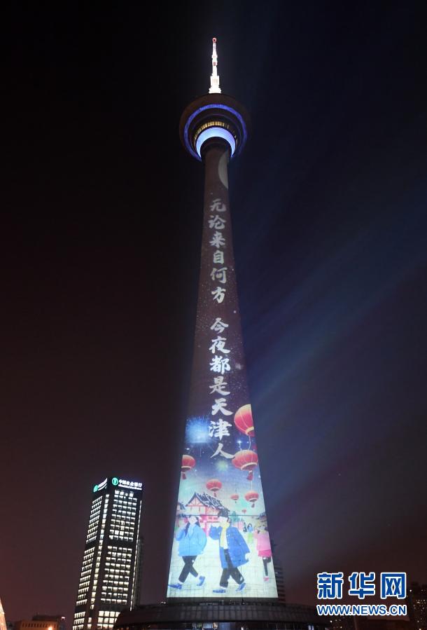 天津:天塔上演灯光秀