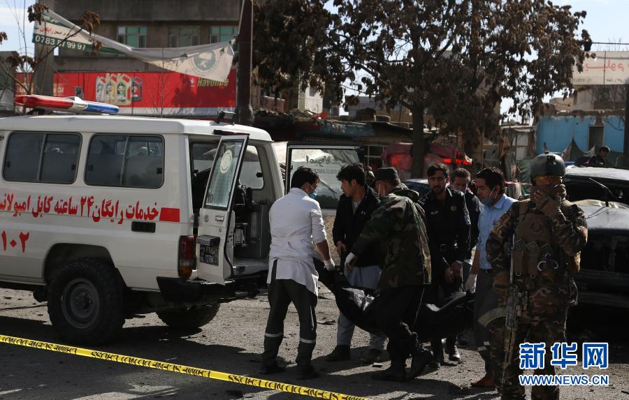 2月10日,安全人员在阿富汗首都喀布尔的汽车炸弹袭击现场转移遇难者遗体。