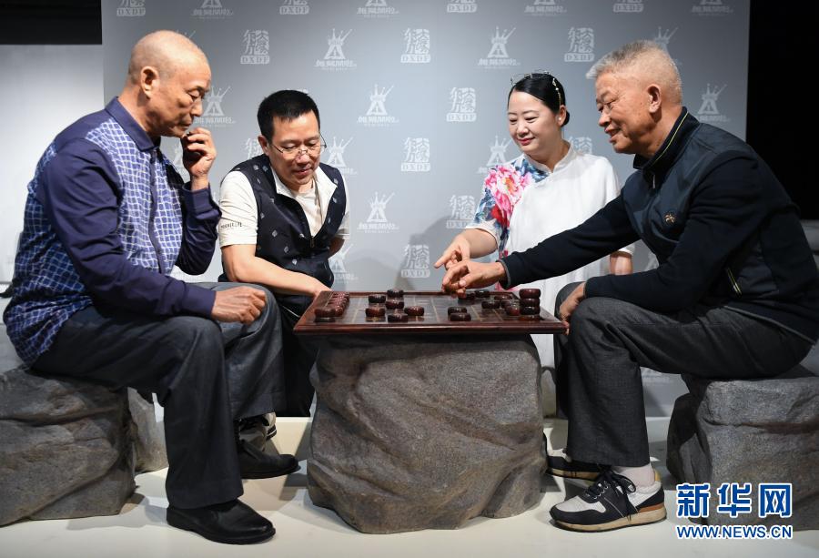 在大象东方蜡像艺术公司展厅,创始人周雪蓉(右后)和丈夫刘震(左后)在蜡像《亲家》前合影,这组作品是以夫妻俩各自的父亲为原型创作的(2月8日摄)。新华社记者 邓华 摄