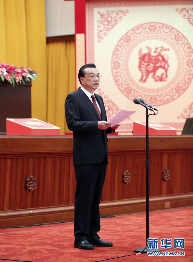 2月10日,中共中央、国务院在北京人民大会堂举行2021年春节团拜会。中共中央政治局常委、国务院总理李克强主持团拜会。新华社记者 刘卫兵 摄