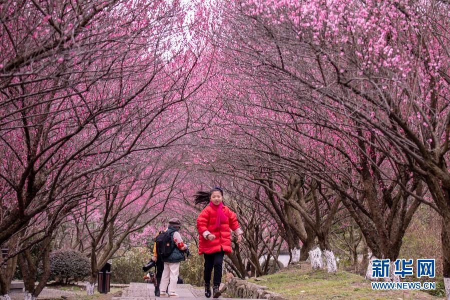 近日,浙江省余姚市陆埠镇十五岙村的梅花竞相开放,吸引游客前来赏花。