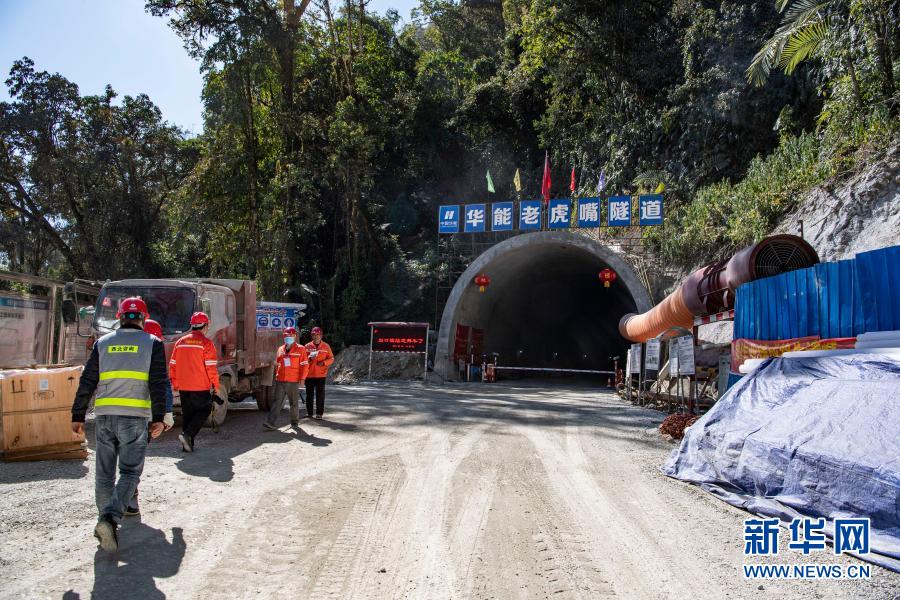 这是施工中的派墨公路老虎嘴隧道出口端(2月10日摄)。新华社记者 孙非 摄