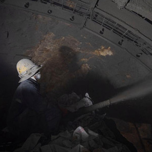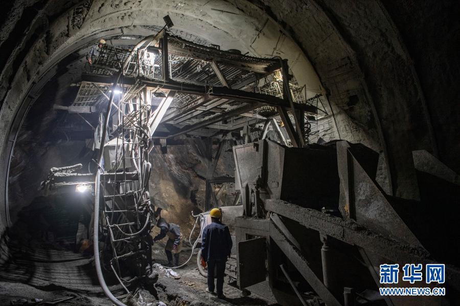 2月10日,在派墨公路老虎嘴隧道出口端,工作人员在进行挂网喷混凝土作业。新华社记者 孙非 摄