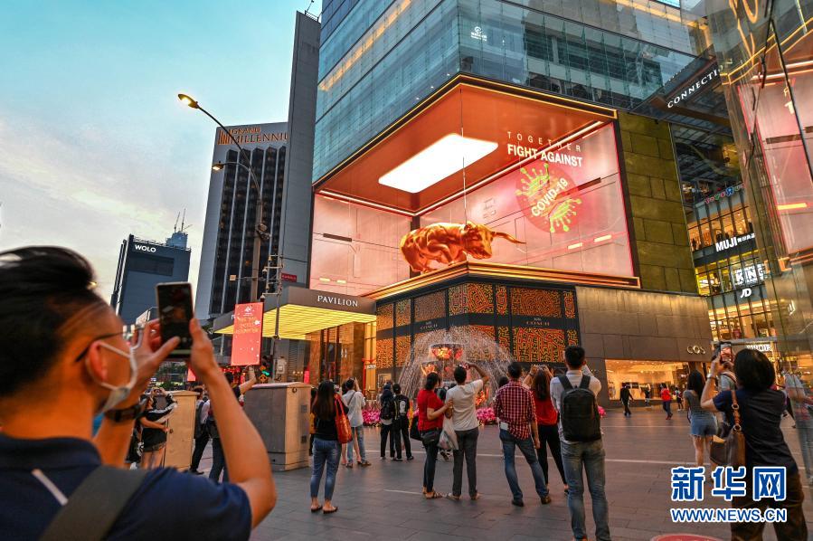 随着春节临近,吉隆坡一家商场的大屏幕近日推出了3D效果的“金牛”视频,旨在为农历新年的到来祈福,同时鼓励人们携手抗疫,击败新冠病毒。