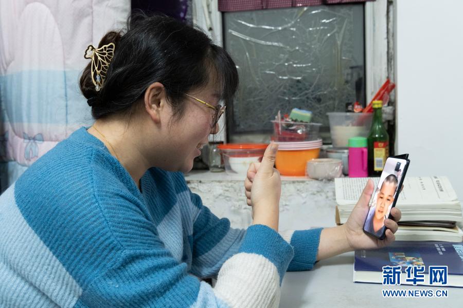 2月10日,在哈尔滨市平房区的宿舍里,刘雨晴在线上指导脑瘫儿童进行康复训练。