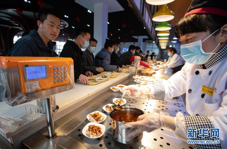2月11日,在四川大学望江校区东二食堂,工作人员为就餐师生服务。新华社记者 江宏景 摄