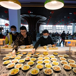 2月11日,在四川大学望江校区东二食堂,两位学生在吃午餐。新华社记者 江宏景 摄