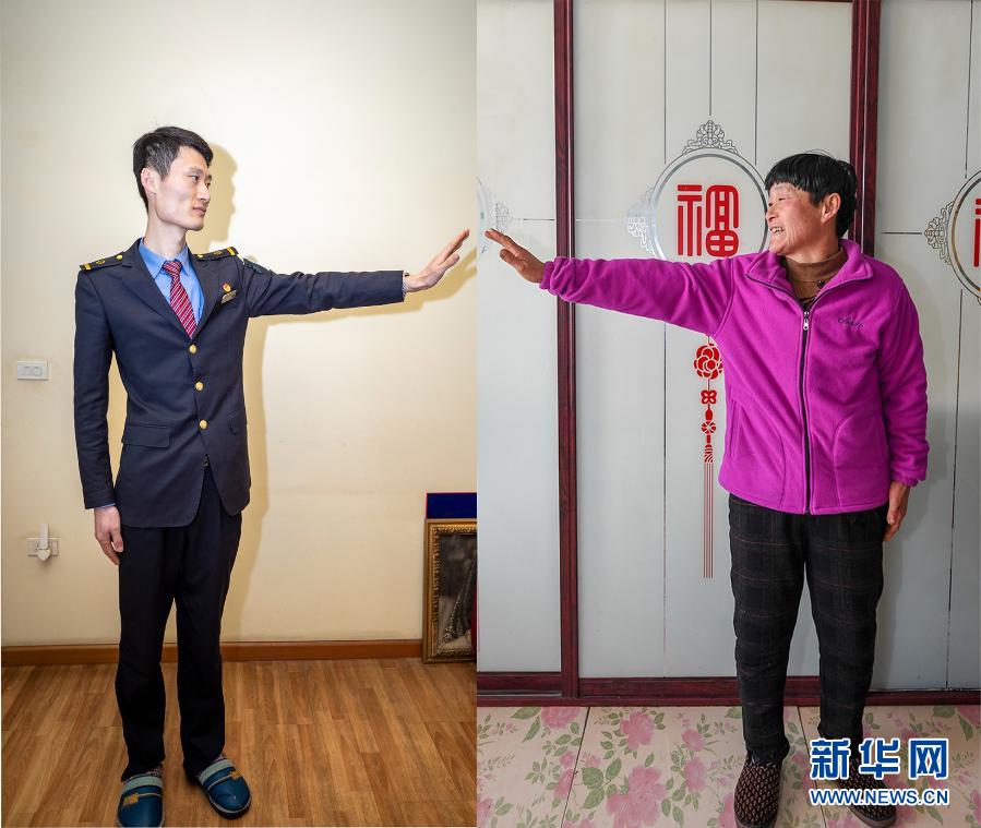 拼版照片:左图为2月10日,付宝印在重庆市渝中区的家中(新华社记者 黄伟 摄);右图为2月9日,付宝印的母亲钟士辉在吉林省长春市农安县杨树林乡牛尾巴山村家中(新华社记者 张楠 摄)。新华社发