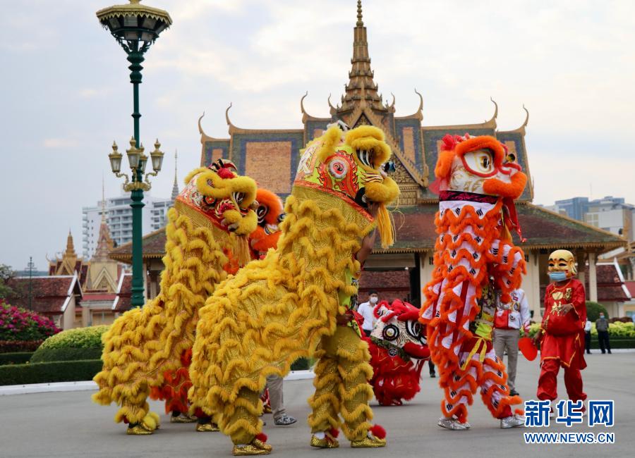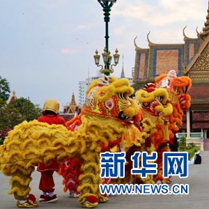 柬埔寨醒狮团到金边王宫贺新年